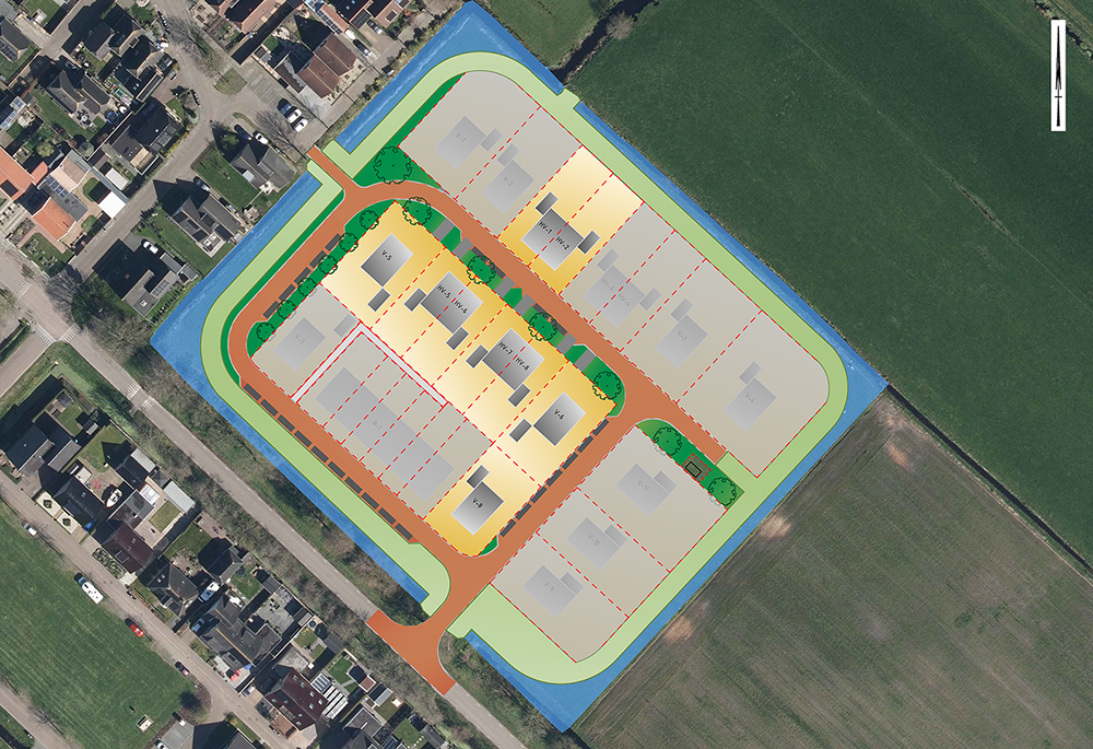 - drie kavels (verschillende groottes) bedoeld voor vrijstaande woningen en;