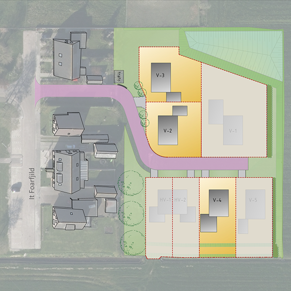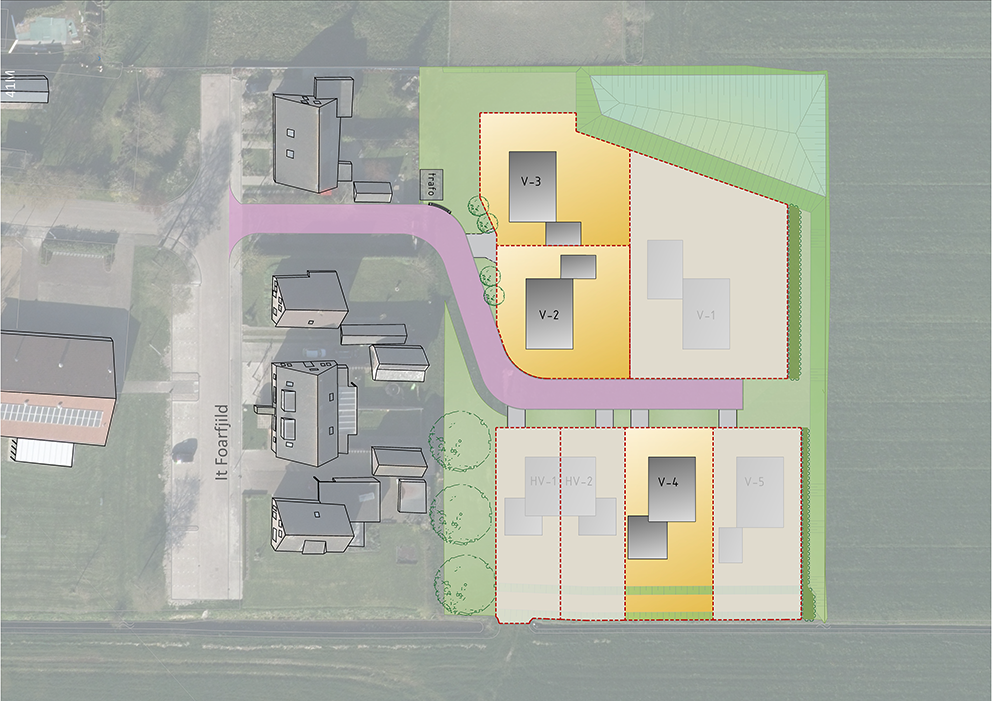 - drie kavels (verschillende groottes) bedoeld voor vrijstaande woningen.